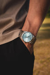 The Ocean Blue Edition blends brushed stainless steel with a striking sky-blue dial – reminiscent of calm seas and open skies. A timepiece that stands out through elegance, perfect for those who make a statement by staying refined.